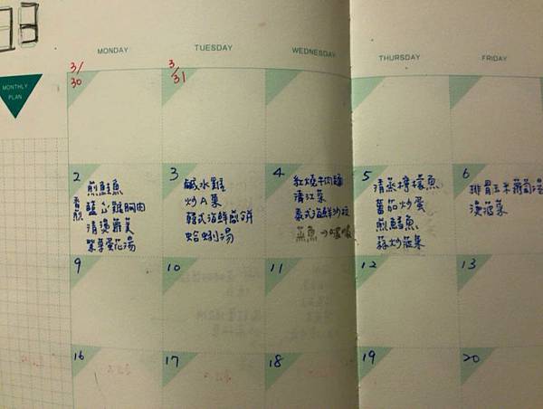 2.可一次先安排好一周菜單,然後每天再據此作調整。